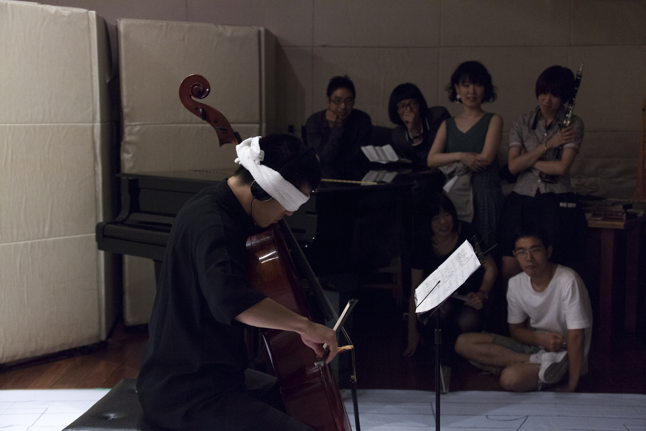 A musical exploration of quasi-ESP exercises (after Vito Acconci). The composer writes a score in a state of sensory deprivation: blindfolded and earplugged. At the concert, the performer plays the score in the same state of sensory deprivation, while attempting to read the score with the utmost concentration. The composer sits in the audience seat and shouts out directions and suggestions to the performer.