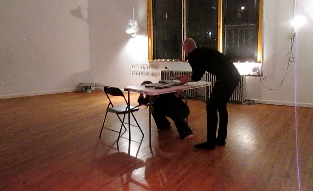 A duet for any kind of (preferably fragile and/or expensive) instrument. One performer tries as much as s/he can to play a “found” or a composed score on the instrument. The other performer tries as much as s/he can to prevent the first performer from playing.