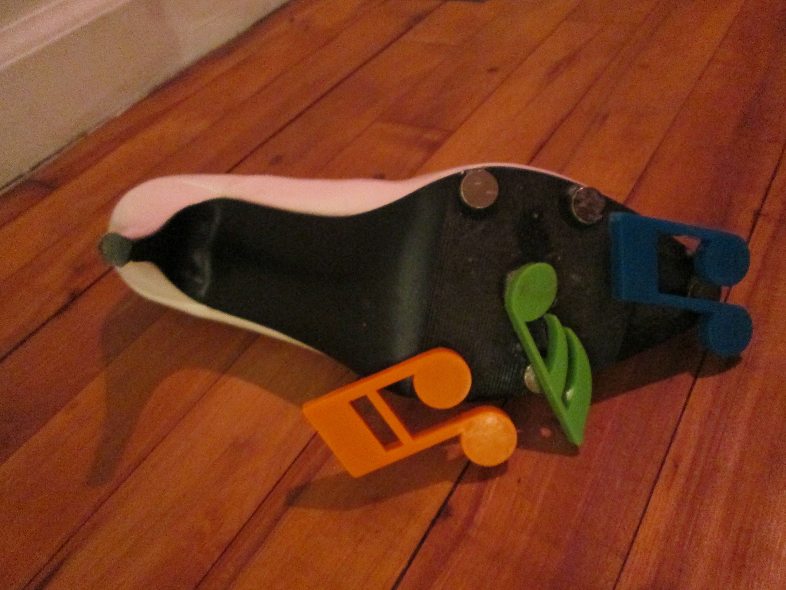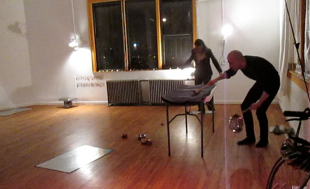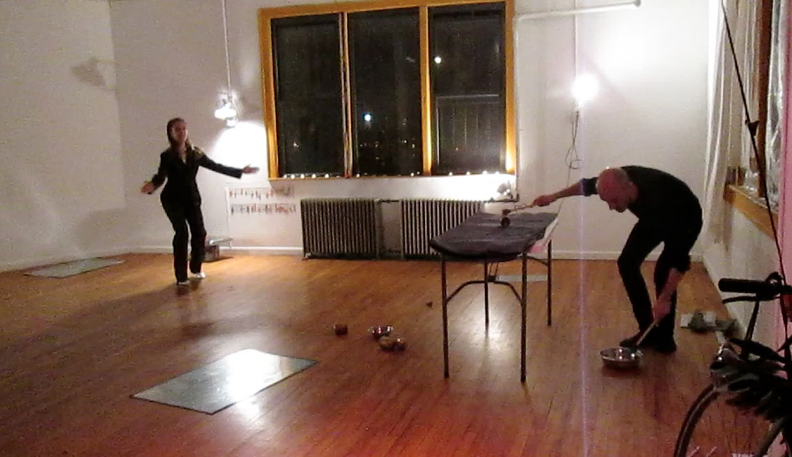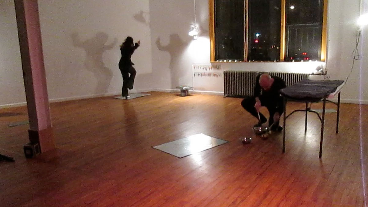 Compose or find a score (films may also be used) for dance and percussion. Only metal instruments should be used, and the dance should be performed on top of, and/or in contact with, a metal surface(s). Rehearse to coordinate the rhythms as well as possible. In performance, attach strong magnets to drum sticks and the dancer’s body (including shoes).