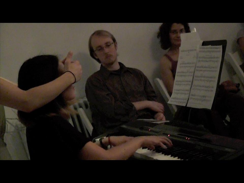 For any number of duos. If more than one pair, a score which is written for the given number of instrumentalists should be found (or composed). The instrumentalist plays, reading from the score. His/her partner stands behind him/her. At any given moment, the partner can cover the eyes of the instrumentalist with his/her hands. Whenever this occurs, the instrumentalist should try as much as s/he can to continue playing as if nothing has happened.