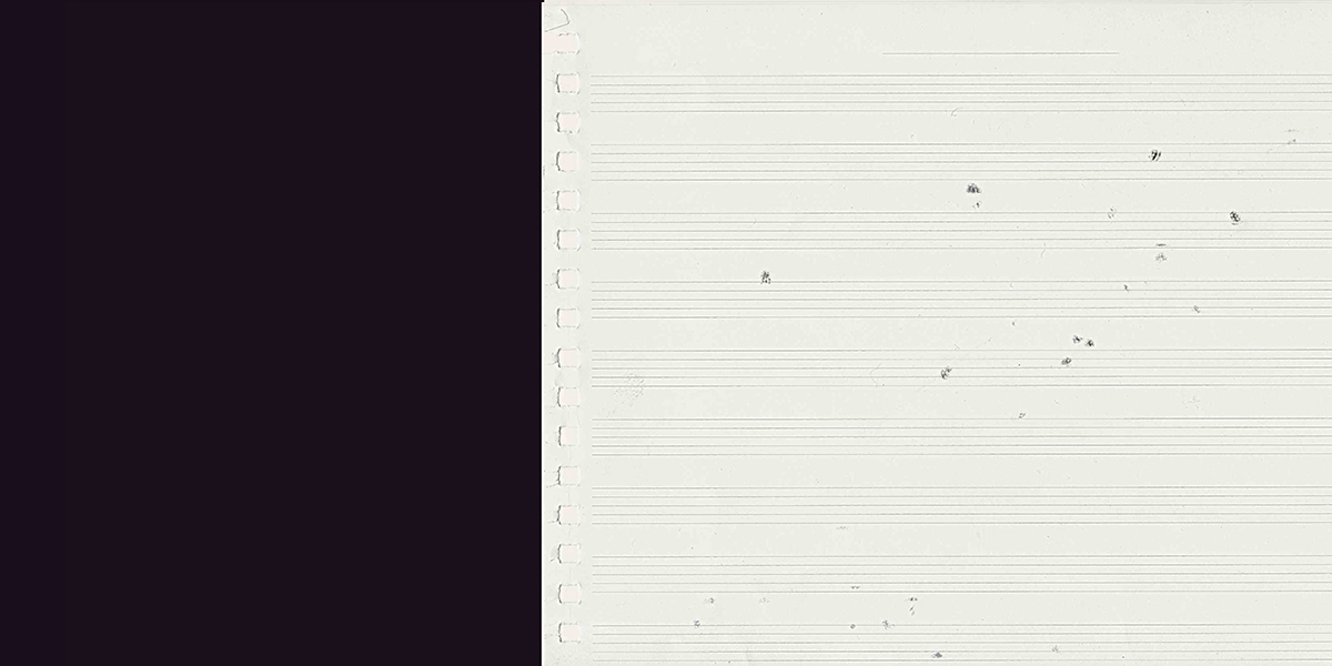For a solo percussion performer. Place a carbon copy paper over a blank staff paper placed on the surface of a percussion instrument(s) to inscribe every hit the performer makes. Perform a short piece following a “found score” or a composed score of no longer than one page. When this first piece is performed until the end, use the carbon copied score (the staff paper with the inscribed hits read as notes) as the next score, with a new staff paper on the instrument, but adding the first score on top of the carbon copy paper. Keep adding the used scores on top of the carbon copy paper to increase the buffer each time, until no hit is inscribed anymore, and thus there are no more notes to play.