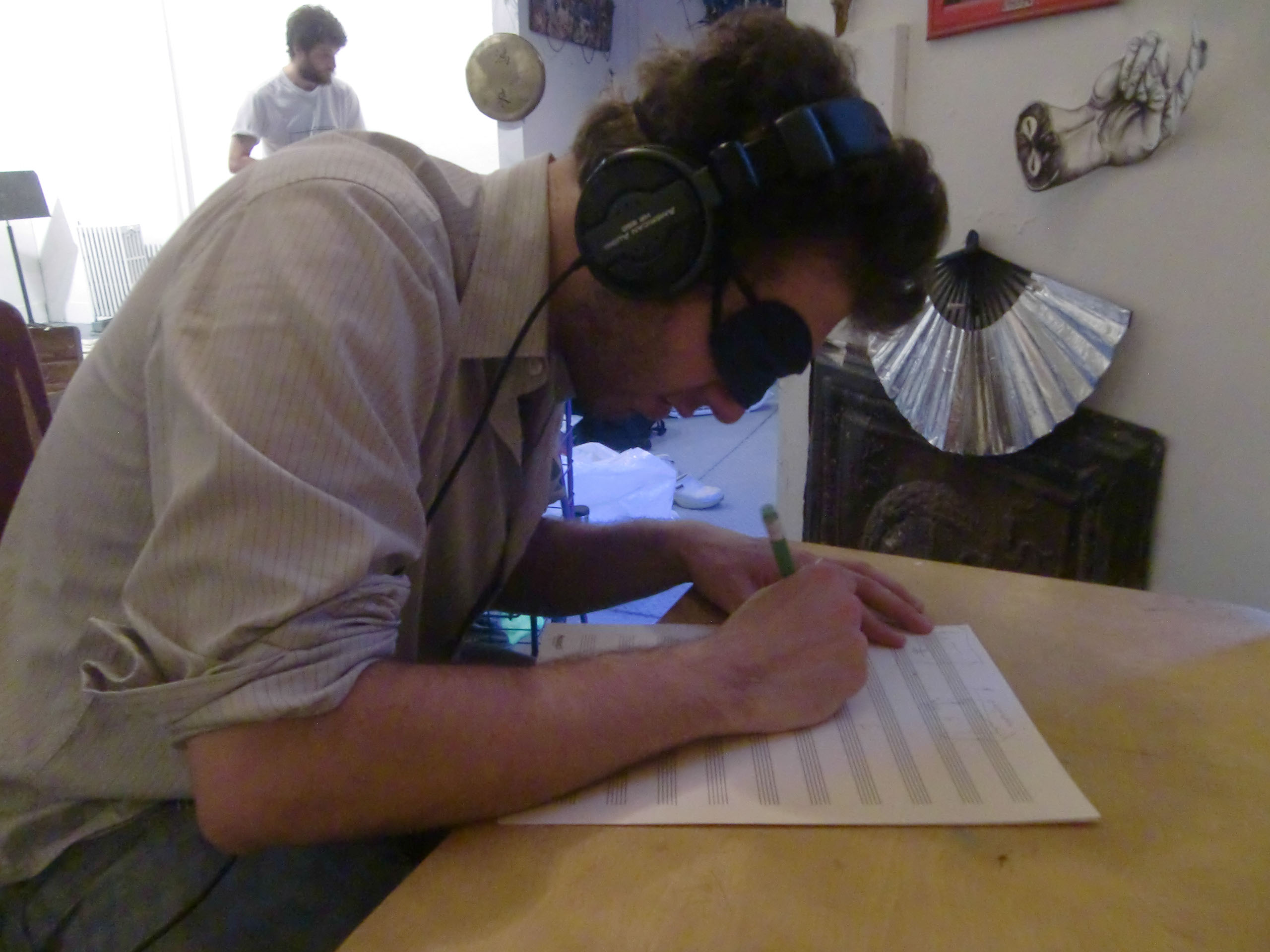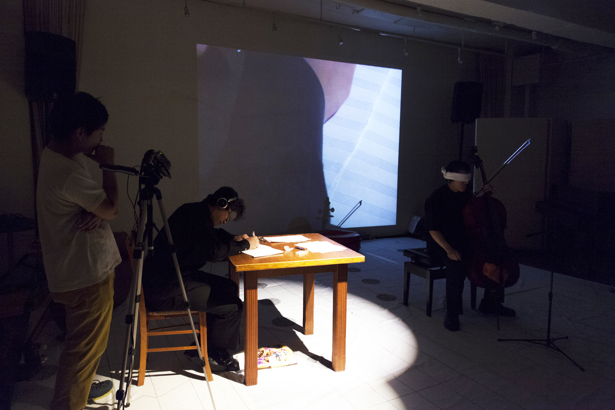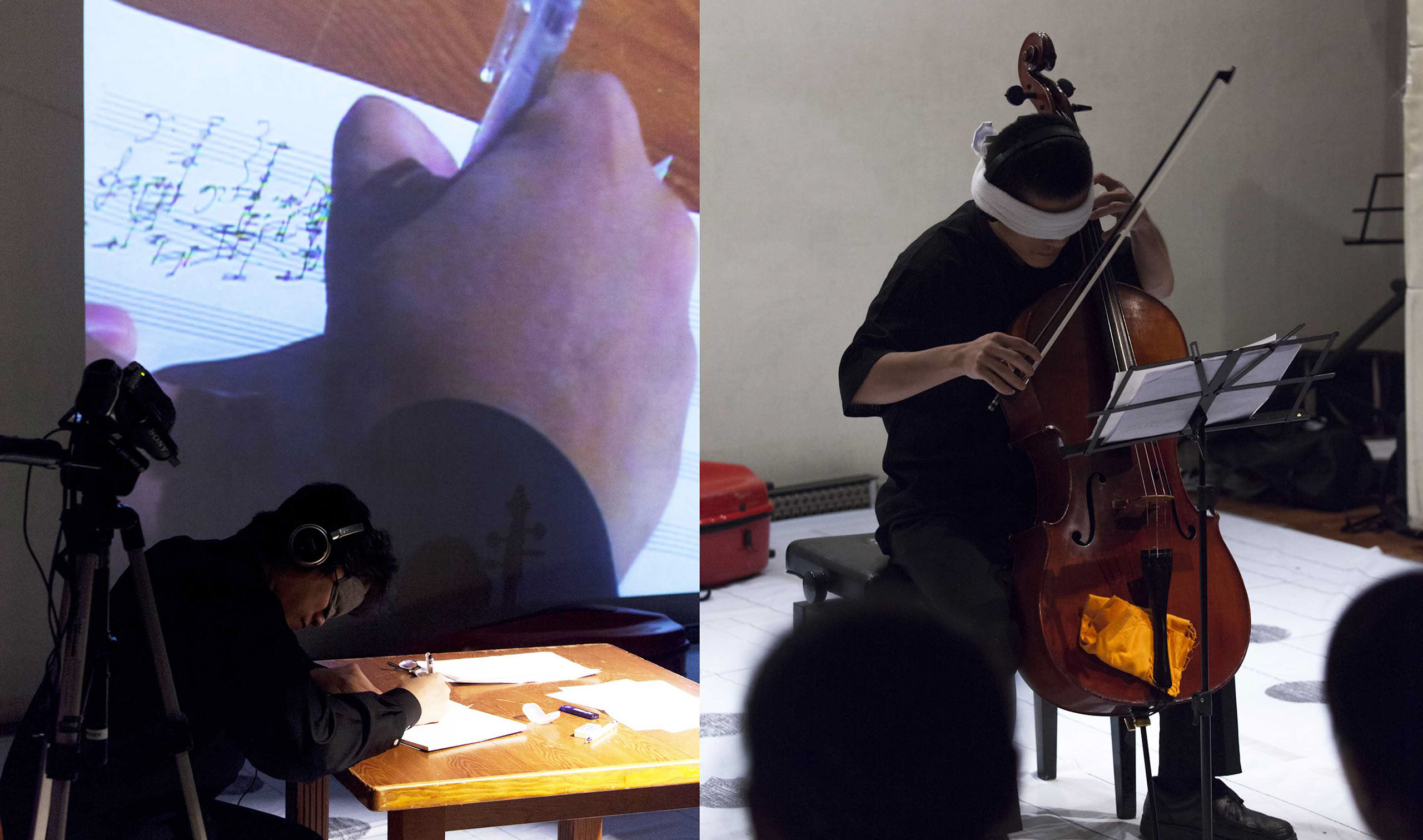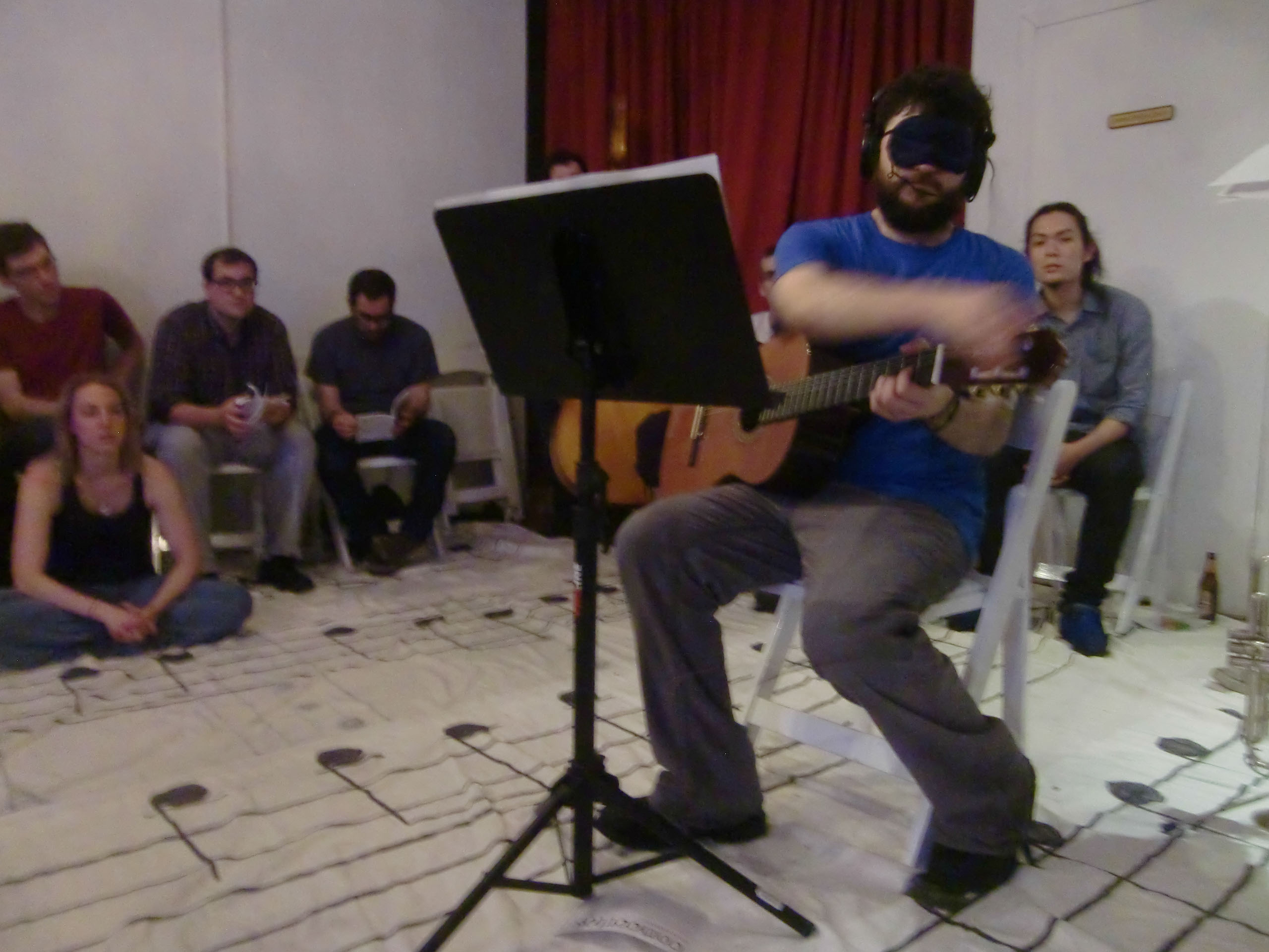 A musical exploration of quasi-ESP exercises (after Vito Acconci). The composer writes a score in a state of sensory deprivation: blindfolded and earplugged. At the concert, the performer plays the score in the same state of sensory deprivation, while attempting to read the score with the utmost concentration. The composer sits in the audience seat and shouts out directions and suggestions to the performer.